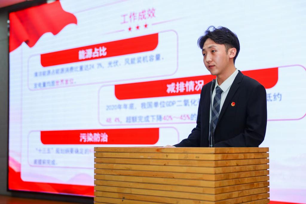 来自13所高校的宣讲代表依次围绕党的十八大以来的历史成就展开主题微宣讲,学院宣讲团成员路凡做了《维护生态环境,成就美丽中国》的主题宣讲,他从规律性认识更加深化、谋篇布局更加成熟、体制制度更加完善、工作成效更加显著、国际影响更加深远的五个角度来阐述党的十八大以来,我国在生态文明建设领域取得的伟大成就。他呼吁广大学生坚持从政治的高度推进生态文明建设,将生态文明建设作为“国之大者”来推动,并且要共同建设保护来之不易的美好环境,为实现美丽中国的目标不断奋进。