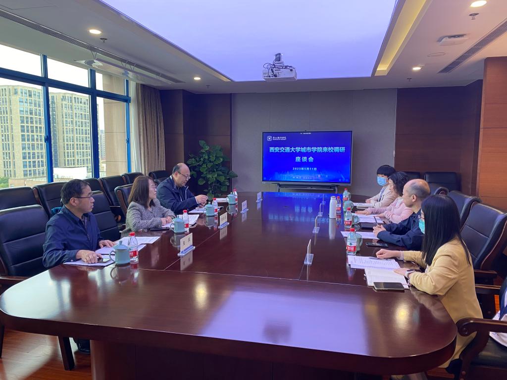 5月11日下午,调研组走访了浙江树人学院,教学质量监控中心主任兼教务处副处长张绣望、教务处副处长张仲杰、教务处方燕群、教学质量监控中心杜笑咪参加了交流座谈。张仲杰处长就浙江树人学院近年来的发展现状、人才培养及产教融合等工作作了详细介绍。张绣望处长从课程质量评价、专业质量评价的角度,详细介绍了日常教学管理、专业建设、课程建设实施的基本情况。他表示,浙江树人学院正以学科建设为引领,全力推进“申硕攻坚、提质升格”,希望能与西安交通大学城市学院在人才培养、信息化教学平台建设、教学质量监控、现代产业学院等方面进一步加强互动交流、学习互鉴、共谋发展。随后,双方重点围绕培养方案、应用型人才培养、教学质量评价、课程建设等方面进行了充分细致的探讨。