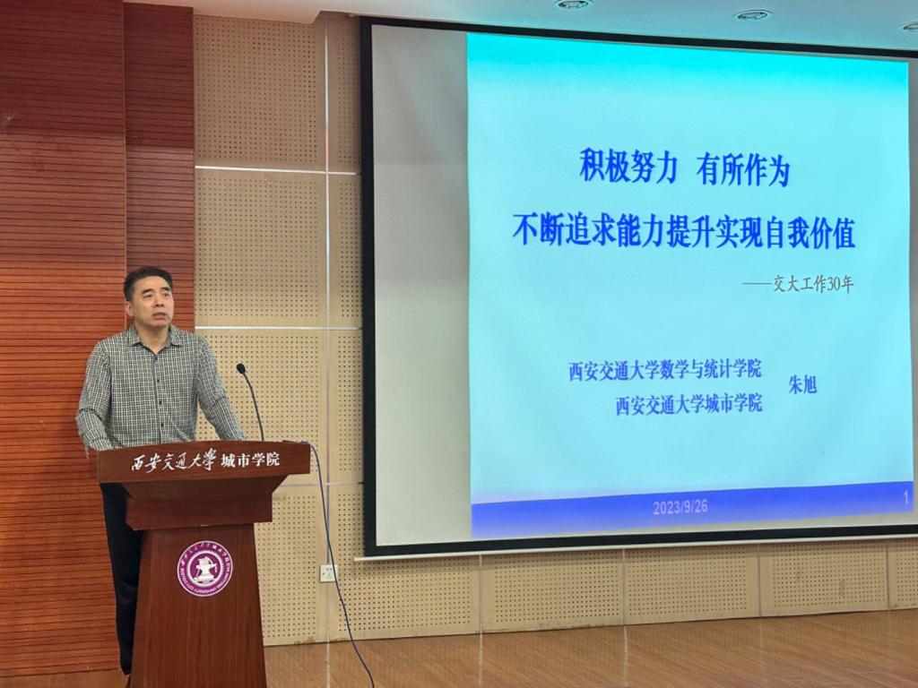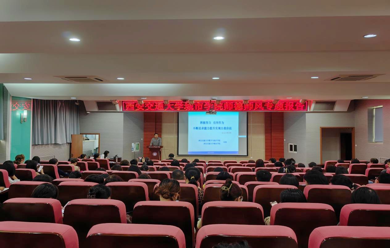 西安交通大学城市学院于9月26日下午在教学楼F100举办了师德师风专题报告会。学院副院长朱旭教授作专题报告,各系部45岁以下青年教师近百人参会,会议由教发中心主任史冬梅主持。