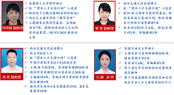 研究团队以“需求牵引、兴趣驱动、优势互补、融合发展”为理念,实行“统筹规划、分工负责、权责分明、开放竞争”的运行机制,积极探索跨校协作、研用结合的新路径,同时高度重视科研诚信与师德学风建设,倡导以德立身、以德立学、以德施教、以德育德。团队成员共16人,我校10人,西交6人,团队成员平均年龄33岁,博士/副教授占比达65%,呈现出鲜明的交叉融合与年轻化特点。