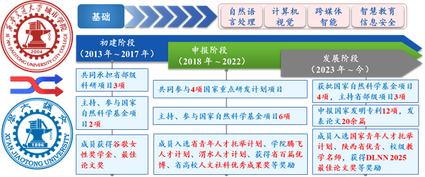 团队研究方向与陕西省“六大新支柱产业”中“新一代信息技术”领域具有很强的契合度,属于大数据与人工智能领域的前沿研究方向,可为落实《提升全省重点产业链发展水平若干政策措施》、《陕西省“十四五”大数据产业发展规划》提供技术支撑。团队依托西安交通大学城市学院及西安交通大学的“计算机科学与技术”学科,近年来先后主持/参与国家重点研发计划课题、国家自然科学基金项目,在多模态数据挖掘与融合方面取得多项创新性成果,形成了具有优势的研究方向。特别是在智慧教育领域的应用研究,形成了鲜明的研究特色。